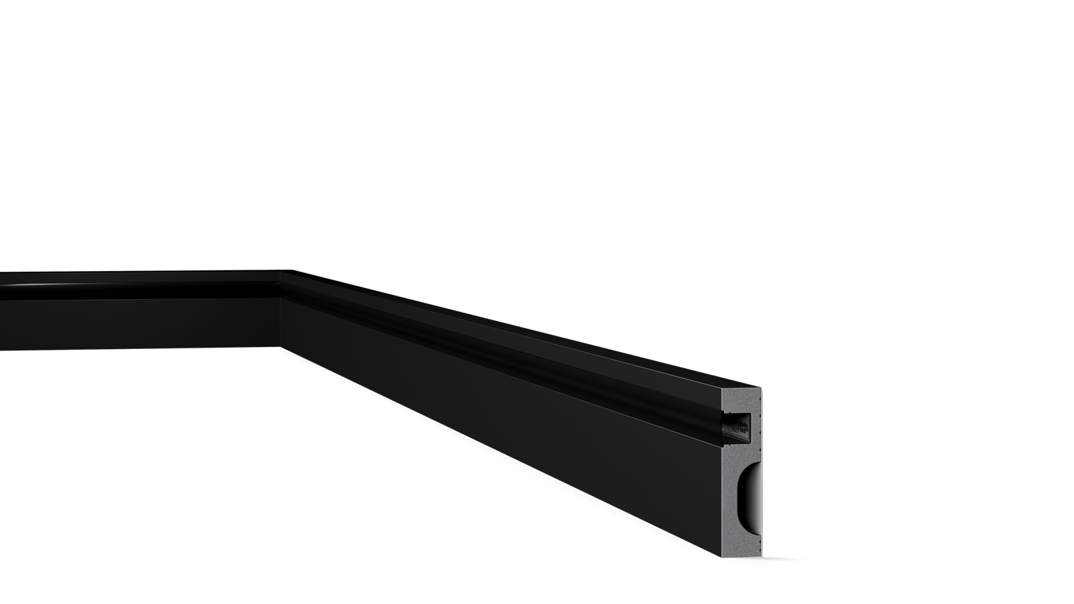 Through its geometric features, sharp angular design, lighting properties and black finish all the way to the core of the element, the IL11 BLACK speaks to stability and modernity. The diffusor integrated into the flank of the profile provides a functional yet decorative element with a certain versatility enabling different lighting effects depending on its installation.