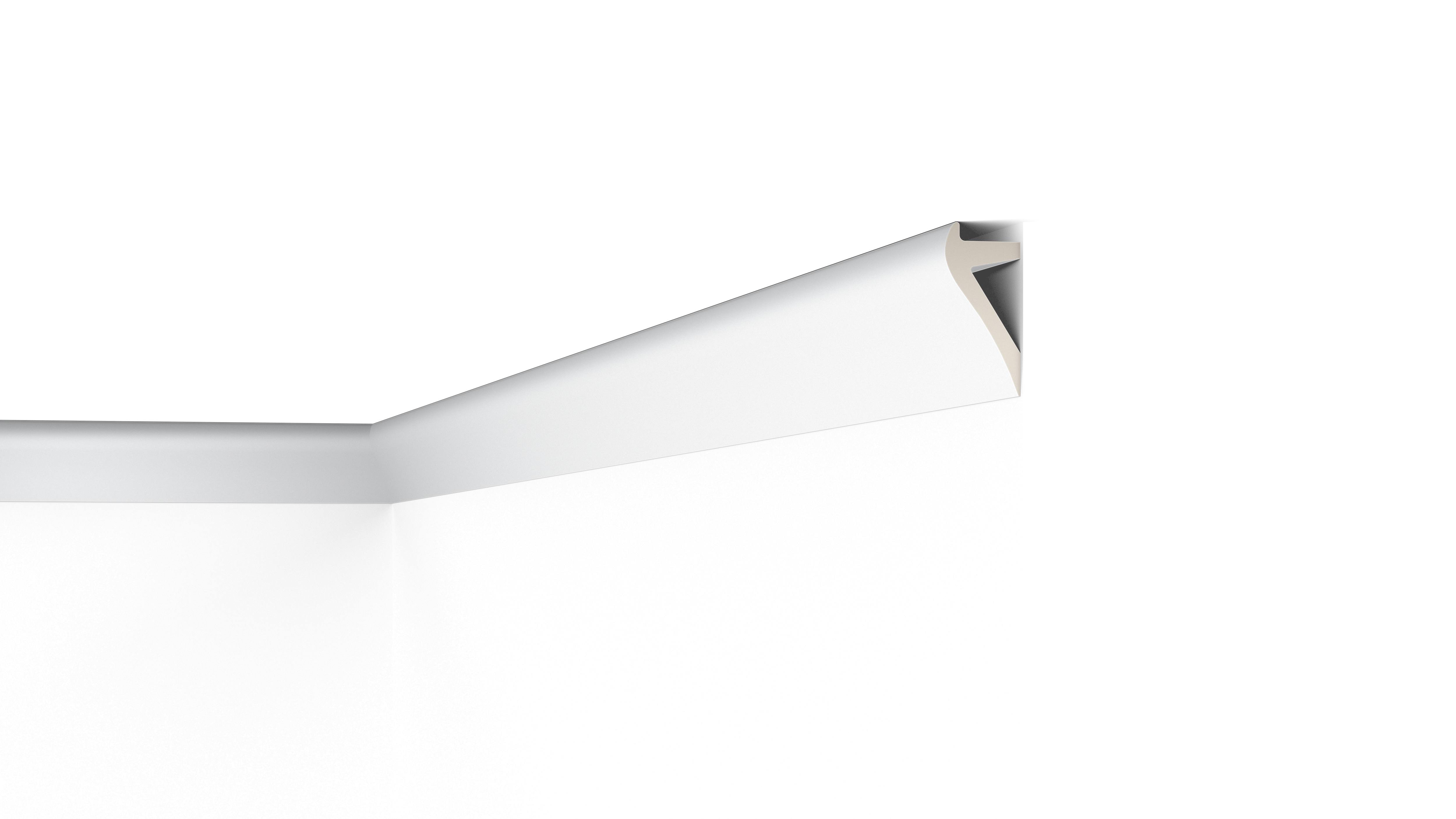 Combine the IL2 with indirect LED lighting to produce a warm and inviting atmosphere. The IL2 cornice has a clear geometric shape to enhance modern impressions. There are numerous application possibilities, allowing for the creation of unique and dynamic interiors. Designed with simplicity in mind, the IL2 cornice adds a modern and smooth feature piece without cluttering up a room.