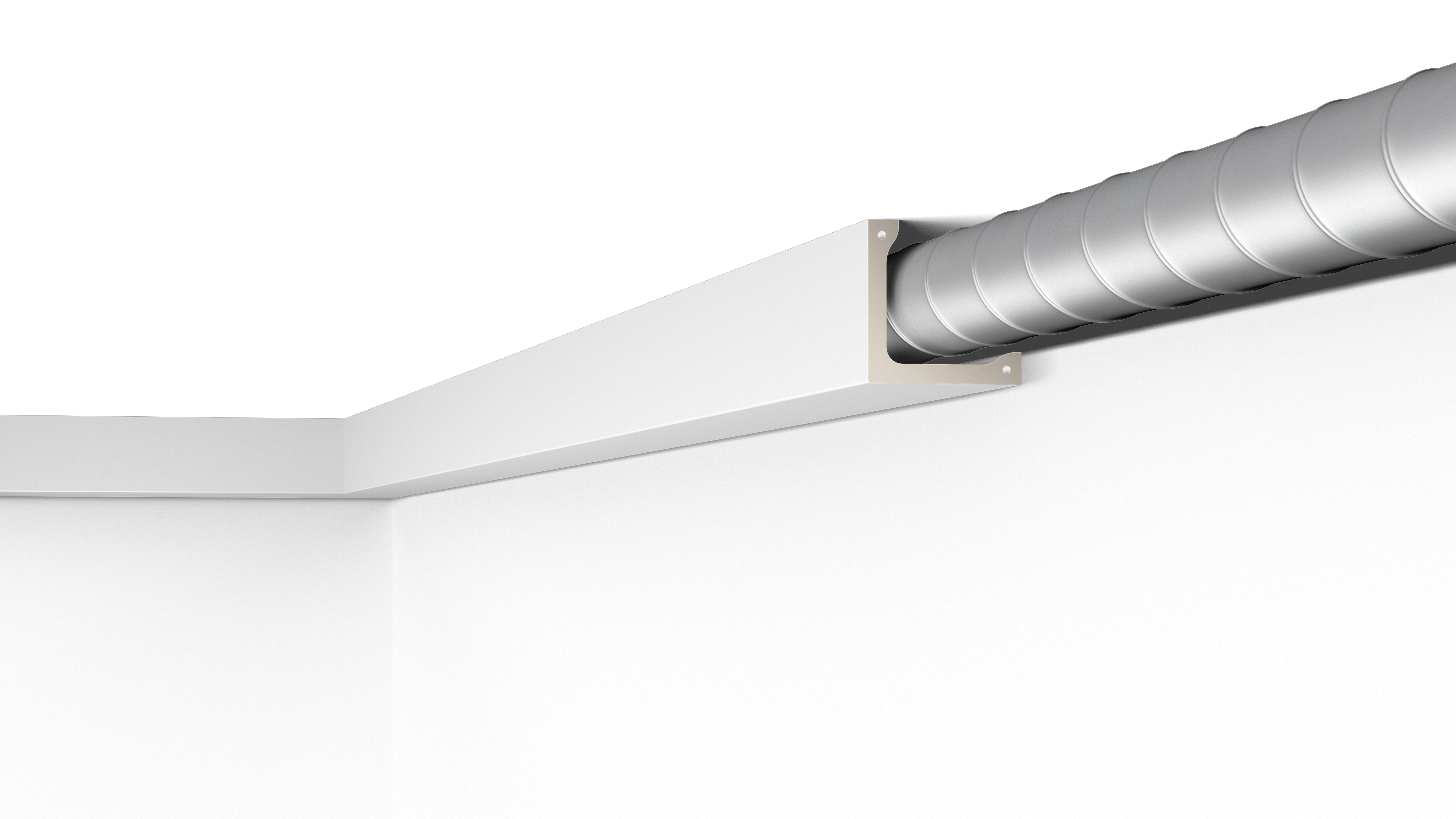 Behind the L4 moulding is enough space to conceal wiring, LED direct lighting or even larger components like ventilation. The L4 is lightweight and simply requires glueing in place. The L4 arrives primed and ready for painting in the final colour.