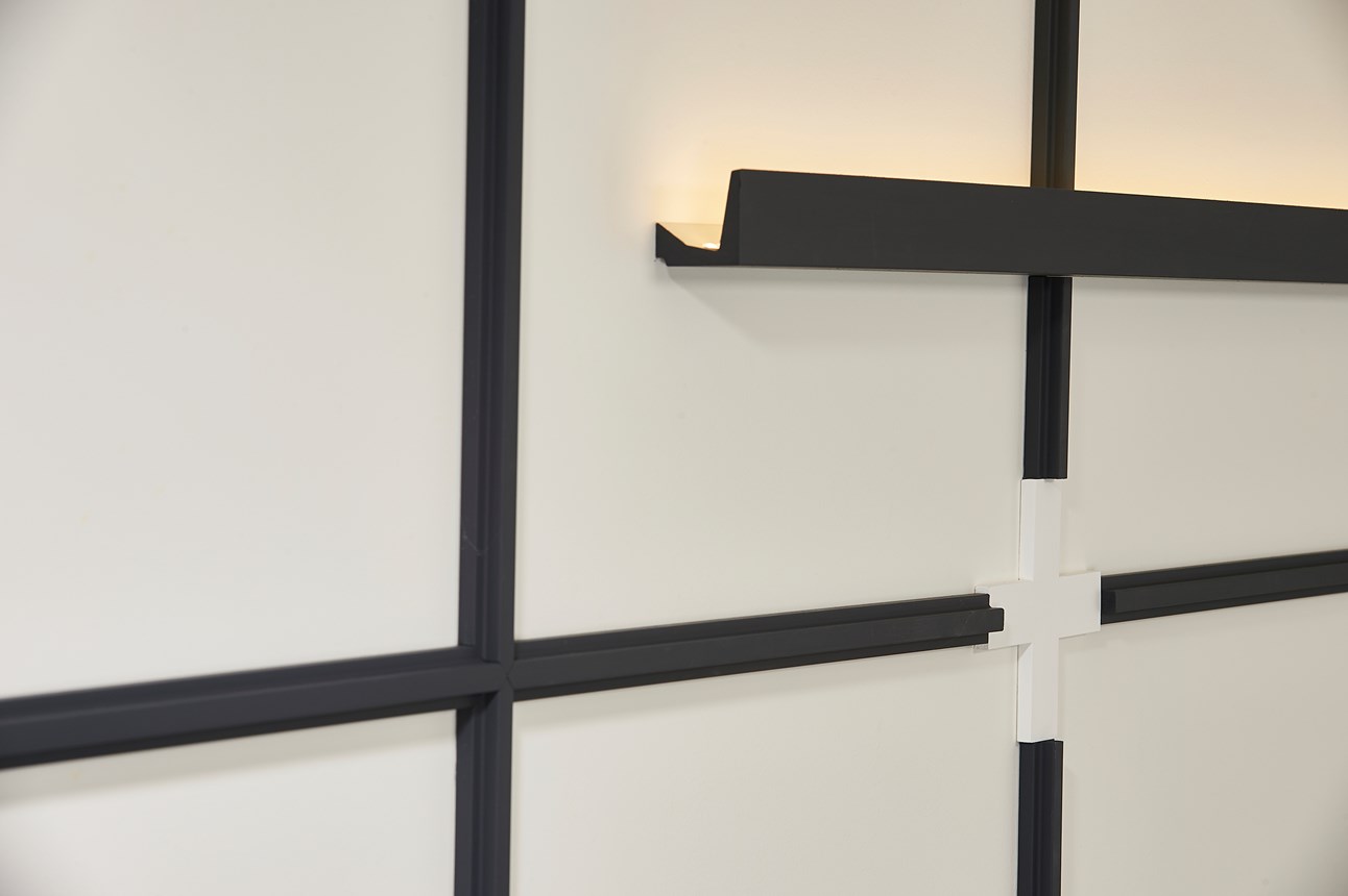 Combine creativity and clean-cut simplicity with the T40 coving. The cubic design lends itself to modern interiors, but the geometric shape is versatile. A shadow line underneath the coving adds an atmospheric effect. The mouldings can be installed in all directions to create unique wall patterns and feature pieces.