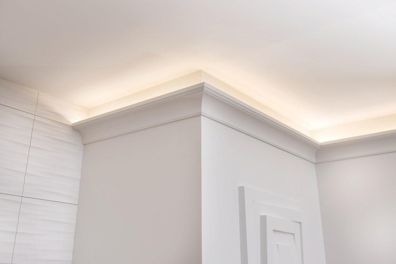 Cornices, picture rails, baseboards, and wall decorations to combine with direct or indirect lighting for a cozy atmosphere.