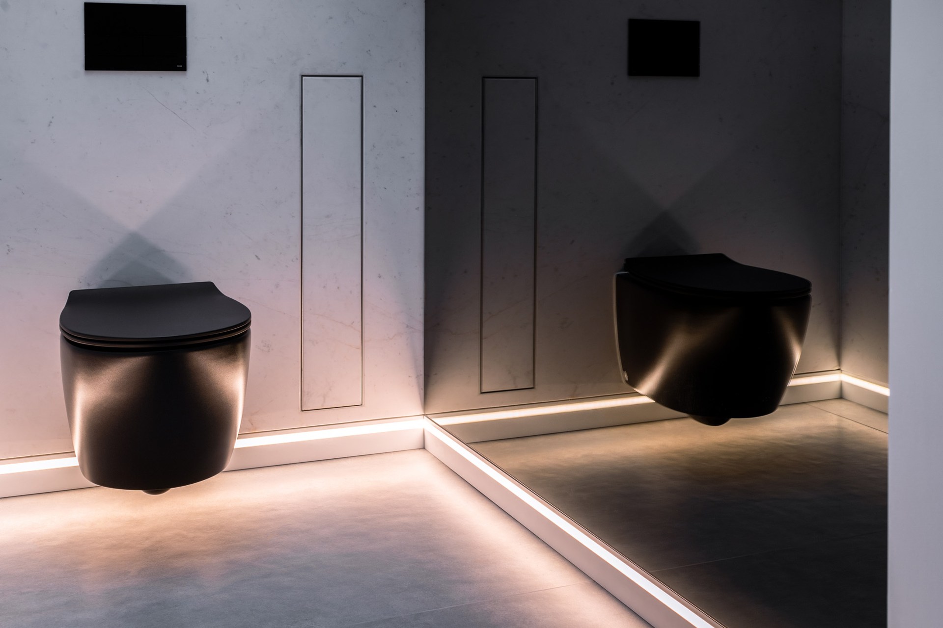 Skirtings with indirect lighting open new creative possibilities for interior design. Featuring a discreet cavity for LED strips, these profiles cast a soft glow that enriches any room with subtle ambience. Clean lines, minimalist proportions and seamless wall integration make them a refined yet impactful design element. Providing walls with important protection and atmospheric light.