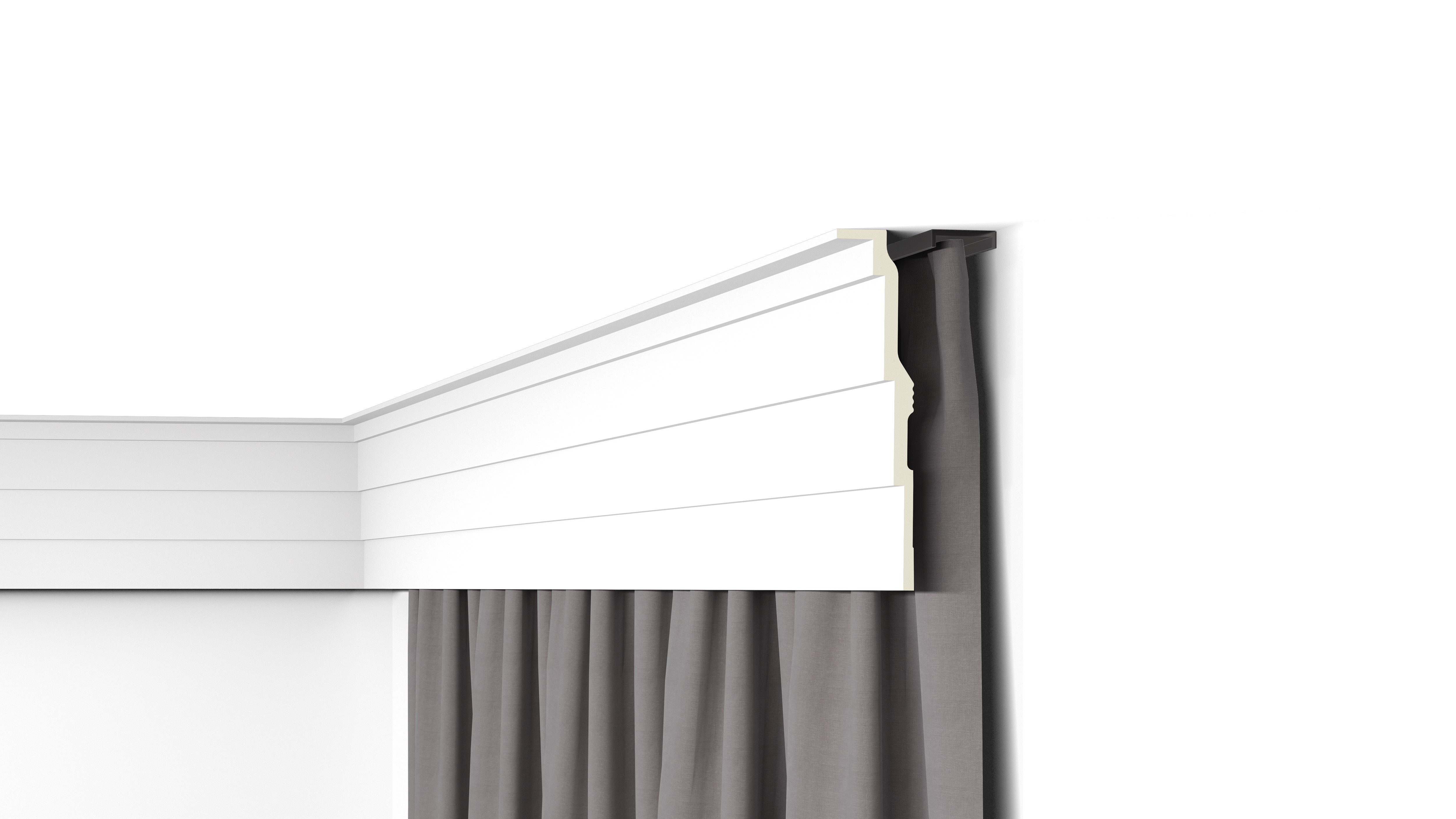 La cornisa AD21 ARSTYL® puede instalarse tanto en la pared como en el techo. La suave geometría escalonada de su diseño ofrece un aporte extra de carácter a cualquier estancia, dotándola a su vez de dimensión y perspectiva. La AD21 es tan sencilla como elegante y muy versátil en diversos estilos de diseño interior. Puede utilizarse también como cortinero con la ayuda de una fijación mecánica a techo.