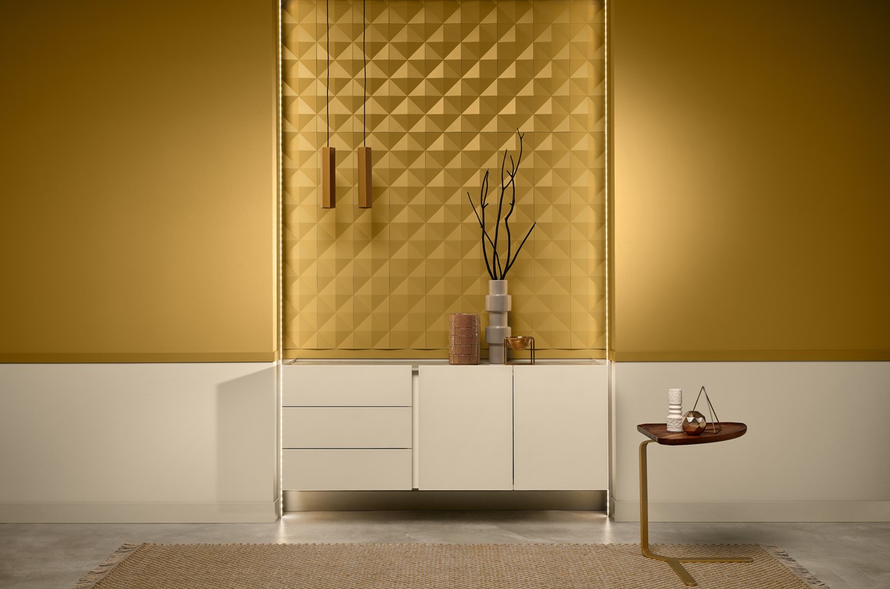 Incorpore un rodapié sencillo como FL9 de WALLSTYL® en un espacio para conseguir un detalle atemporal y una textura adicional. El perfil minimalista tiene un toque profesional y el material resistente a los impactos protege la pared. FL9 también puede usarse para crear molduras o marcos en la pared.
