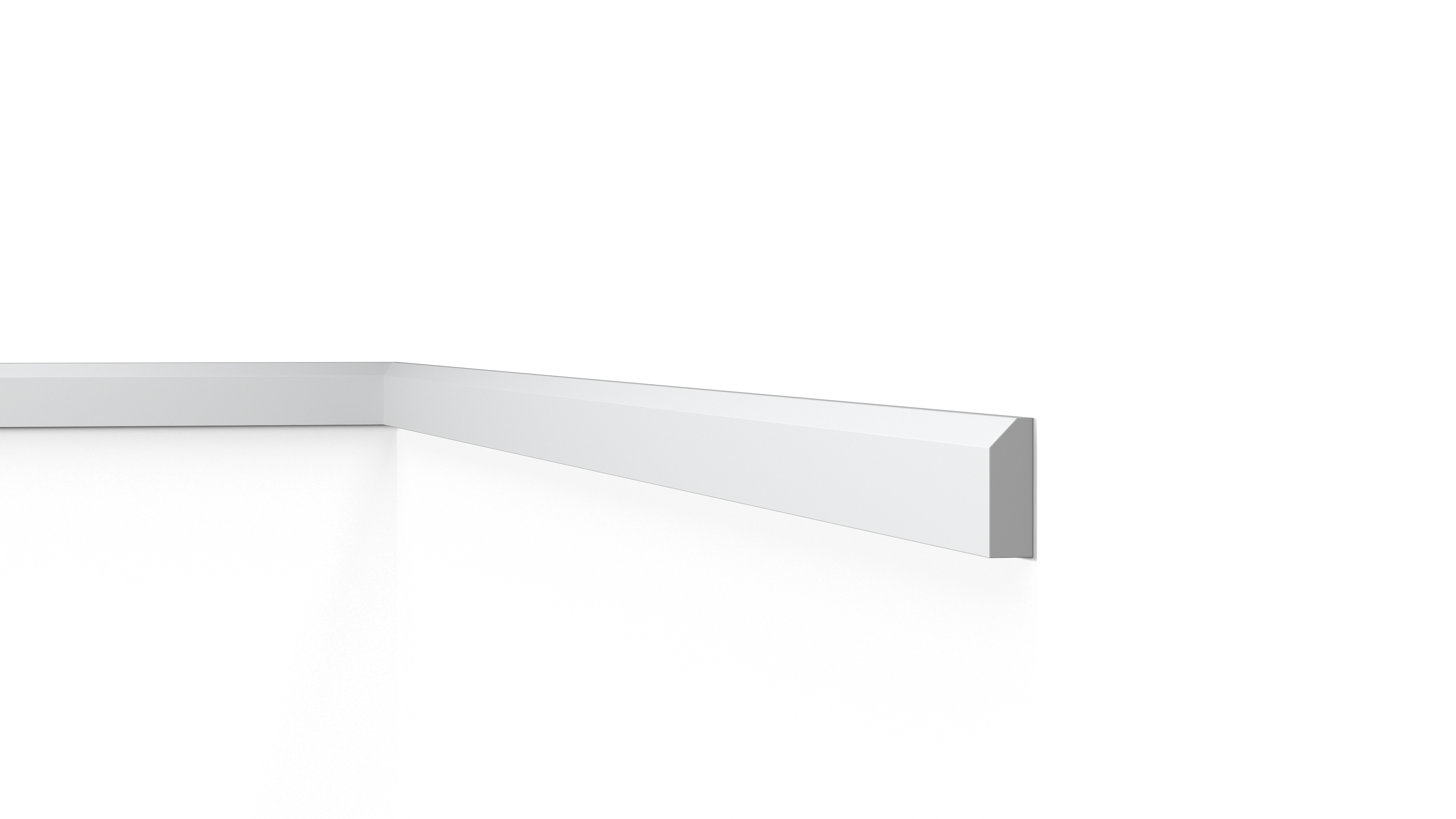 El rodapié FT1 WALLSTYL® ofrece una transición limpia entre la pared y el pavimento, adecuada para el diseño de interiores más moderno. Para su uso como rodapié, el FT1 puede instalarse tanto con la arista achaflanada en la parte superior como con su espacio en la parte posterior para cubrir cables. Todas sus posibilidades de instalación consiguen un acabado uniforme y sofisticado. El rodapié FT1 puede utilizarse también como moldura de cuarterón, para crear diseños de patrones en la pared, como tapajuntas en puertas de paso o incluso como marcos de espejo, papeles o telas.