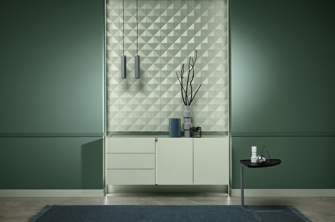 Decoración mural con paneles de pared, losetas, rosetones y guardasillas para imprimir un toque moderno a su interior.
