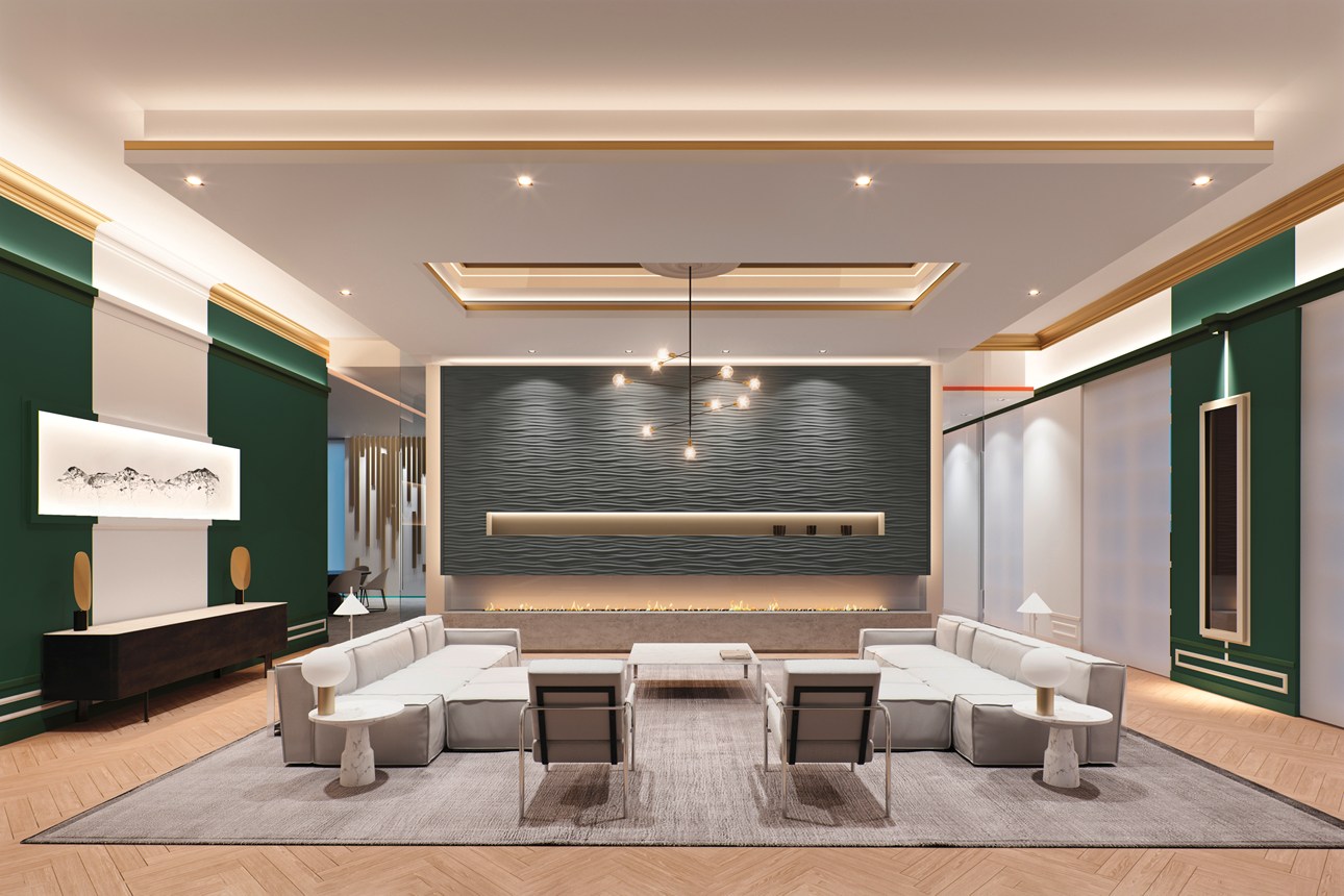 Decoración mural con paneles de pared, losetas, rosetones y guardasillas para imprimir un toque moderno a su interior.
