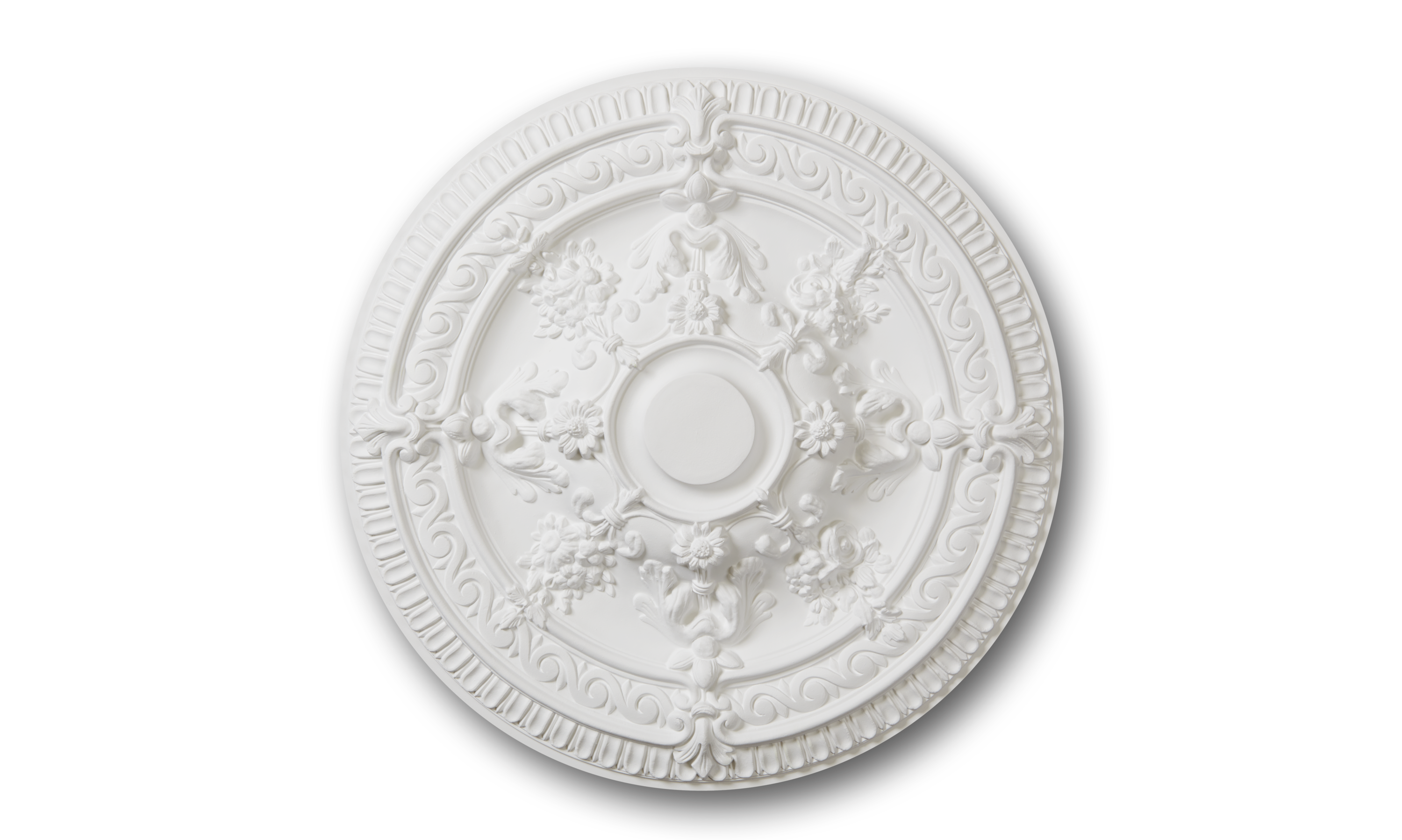 El rosetón R11 ARSTYL® presenta un diseño decorado y florido que realzará sus interiores. Hay mil maneras de personalizar un espacio instalando el R11. El R11 puede instalarse independientemente o como parte de un diseño más intrincado en la pared o el techo. La forma del R11 ARSTYL® lo convierte en una base de iluminación perfecta para lámparas de araña u otros accesorios.