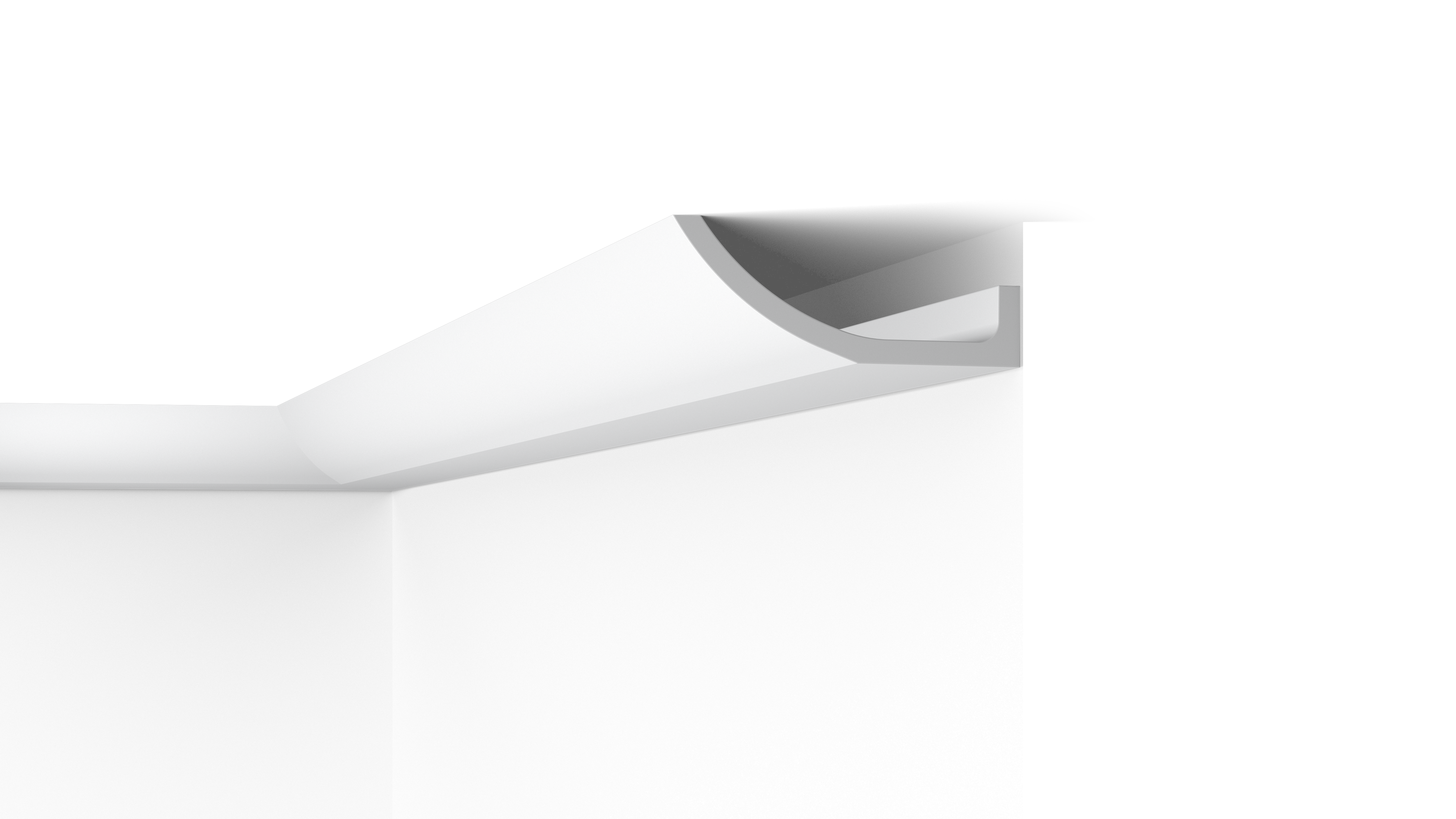 La suave curva de la cornisa WT4 la convierte en un perfil de acabado especial. Ésta elegante moldura encaja incluso en los estilos más dinámicos en el diseño de interiores. Se puede usar como fuente de iluminación indirecta para crear una atmósfera cálida y acogedora, ya que su forma permite jugar de manera creativa con los efectos de luz y sombra.