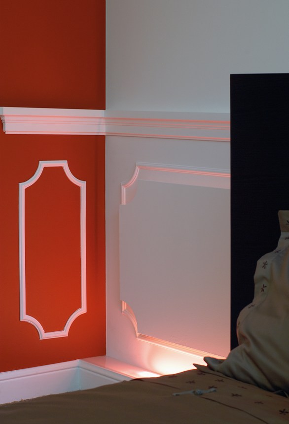 Cornisas, guardasillas, zócalos y decoración mural que se combinan con la iluminación directa o indirecta para crear un ambiente
