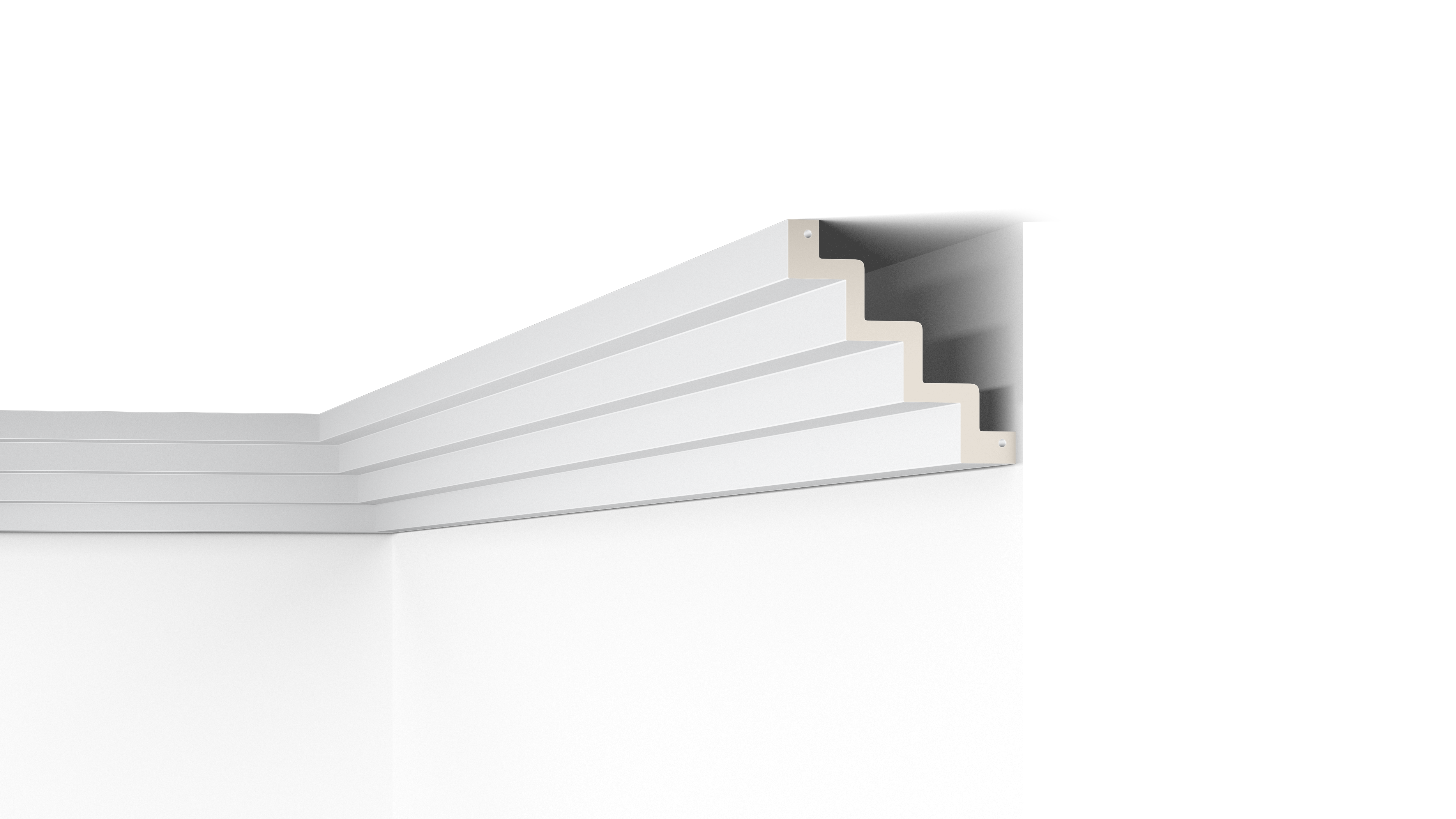 El sencillo proceso de instalación se ve facilitado por la naturaleza ligera y resistente del poliuretano. Cada moldura de techo Z51 viene imprimada y lista para ser instalada. Una vez pegada en su lugar, ya puede pintar la moldura del color deseado. En la parte posterior de la moldura hay un espacio que es muy práctico para ocultar cables, grietas y transiciones.