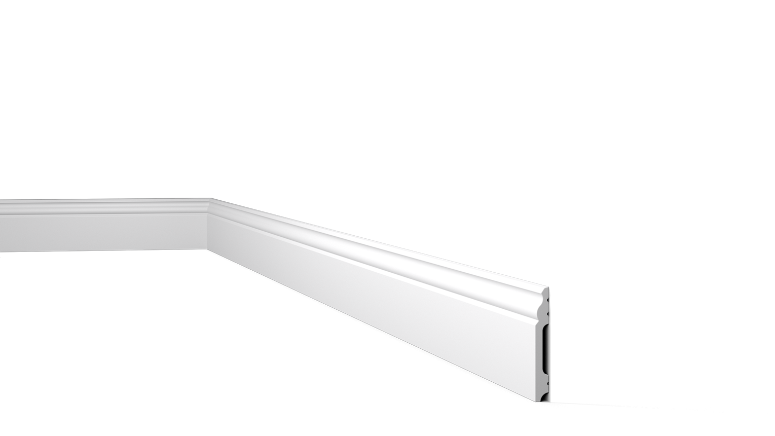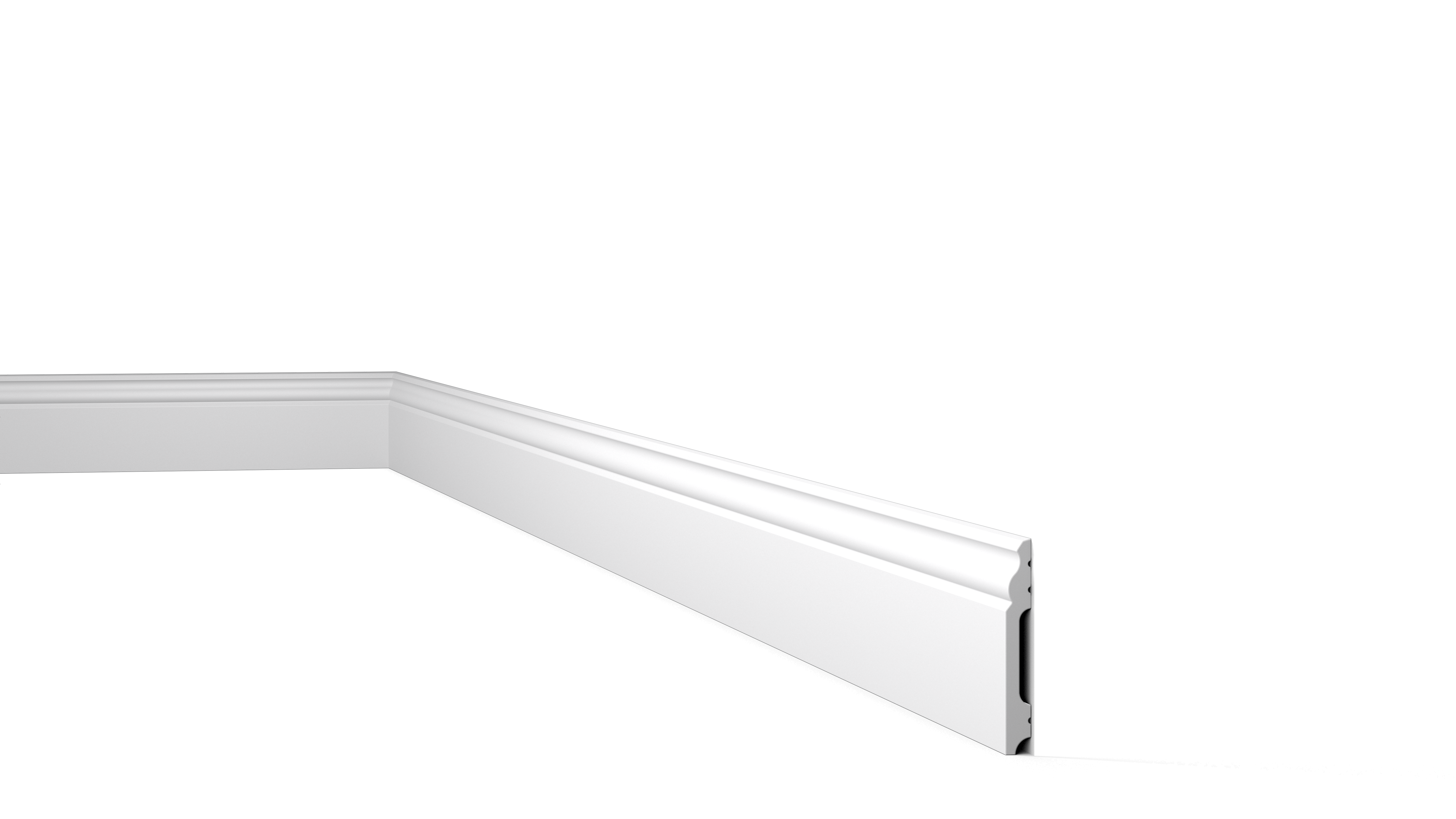 La plinthe FB2F WALLSTYL® est prête à être installée. Les moulures sont peintes en blanc en couleur RAL 9016. À la fois visuellement attrayante et fonctionnelle, la plinthe FB2F WALLSTYL® sert de protection dans des espaces de passage comme les maisons et les bars.