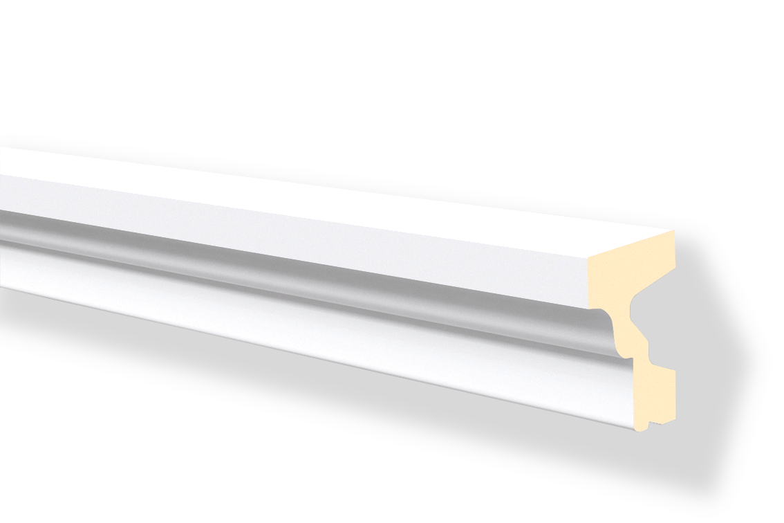 Cornijas, guardas, rodapés e decoração de parede que combinam com iluminação direta ou indireta. Para criar uma atmosfera