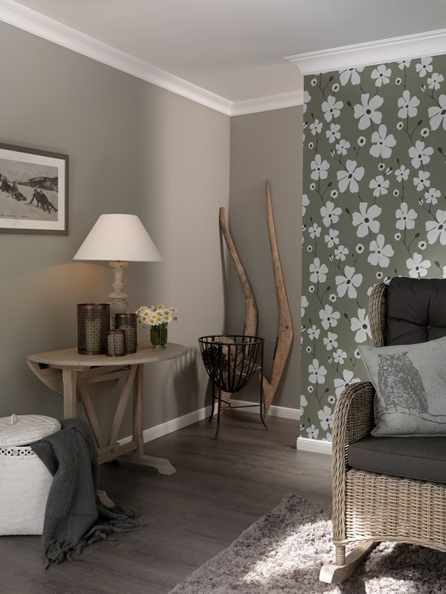 Decoração de parede com painéis de parede, revestimento, rosetas e rodapés para dar um toque moderno ao seu interior.