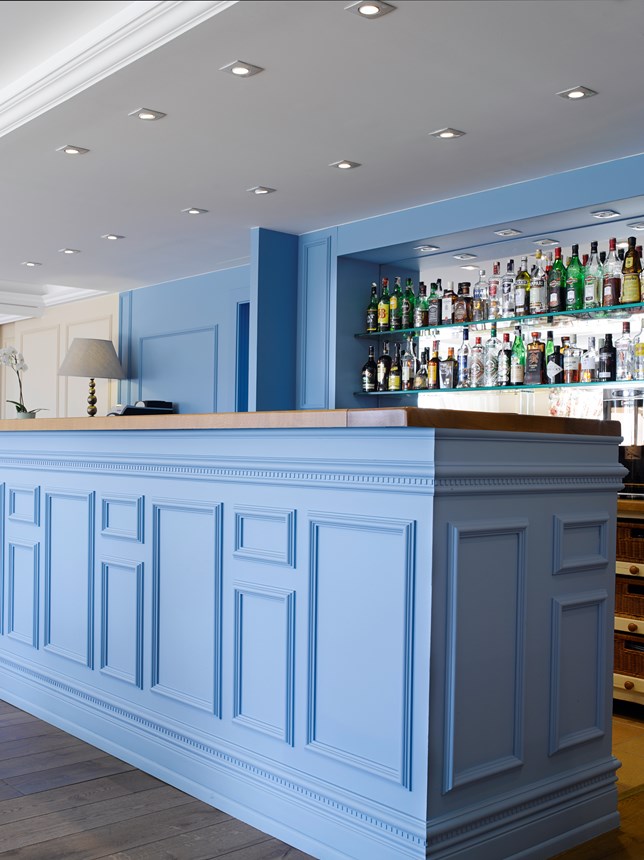 Cornijas, guardas, rodapés e decoração de parede que combinam com iluminação direta ou indireta. Para criar uma atmosfera