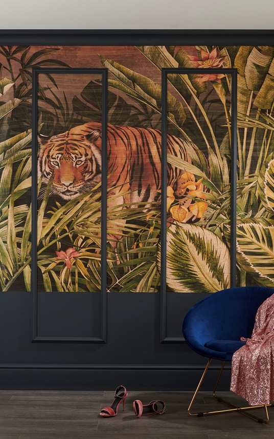 Decoração de parede com painéis de parede, revestimento, rosetas e rodapés para dar um toque moderno ao seu interior.