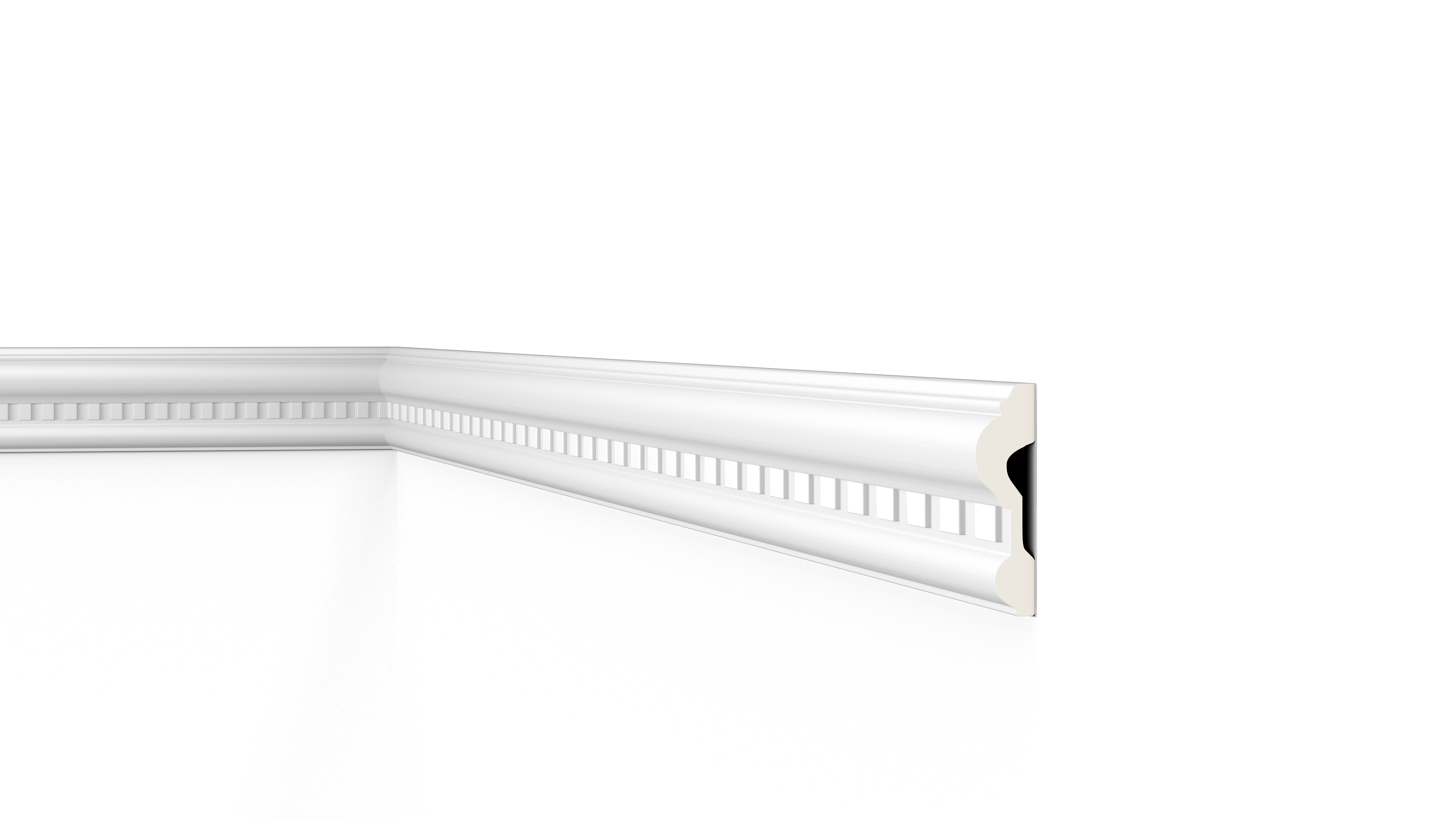 Decoração de parede com painéis de parede, revestimento, rosetas e rodapés para dar um toque moderno ao seu interior.